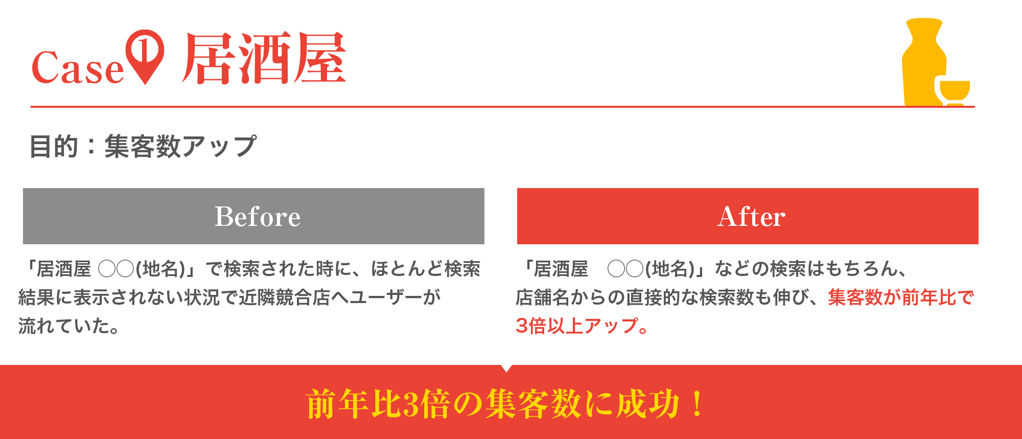 そのため、MEOを導入し、自店を検索エンジンの上位に表示させることがそのまま集客アップへの近道となります。