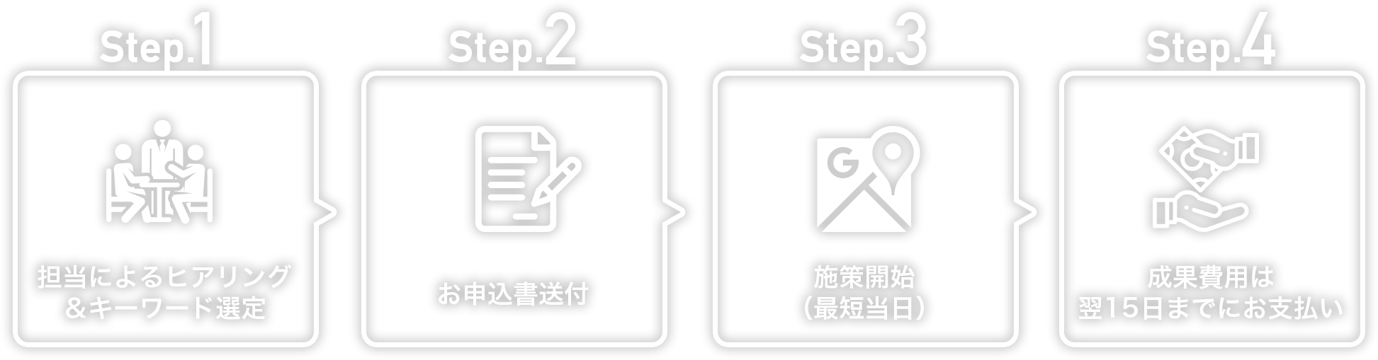 DECIDEのMEOは完全成果報酬のため、上位に表示された場合のみ成果報酬費をいただいたおります(月上限¥31,000)。